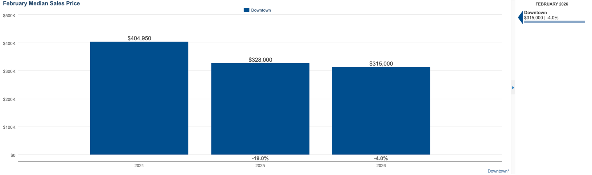 February 2026: $315,000 (-4.0% YoY)