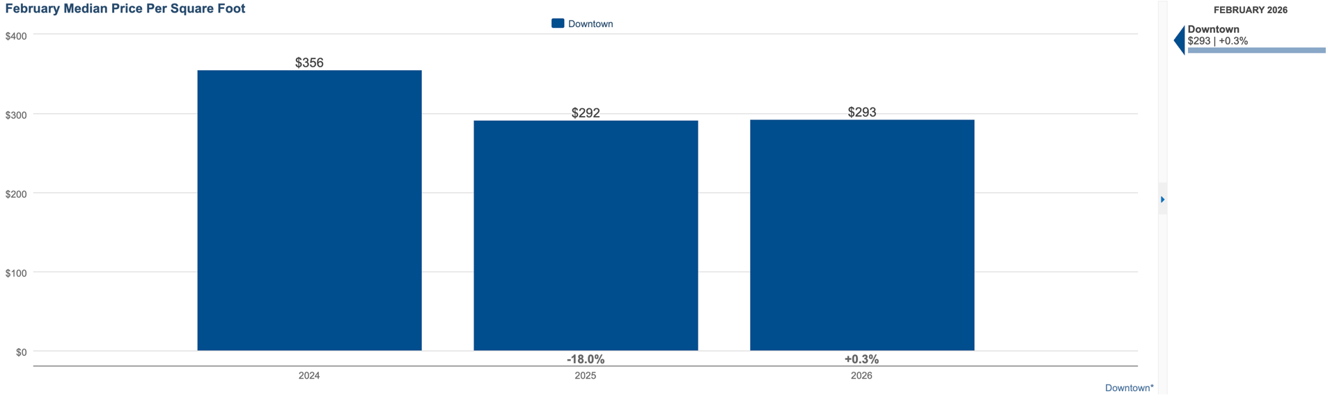 Even with softer median sale prices, buyers continue to pay consistent rates relative to size. This suggests that demand for well-located downtown property remains intact, and even boosted particularly for updated or well-designed units.