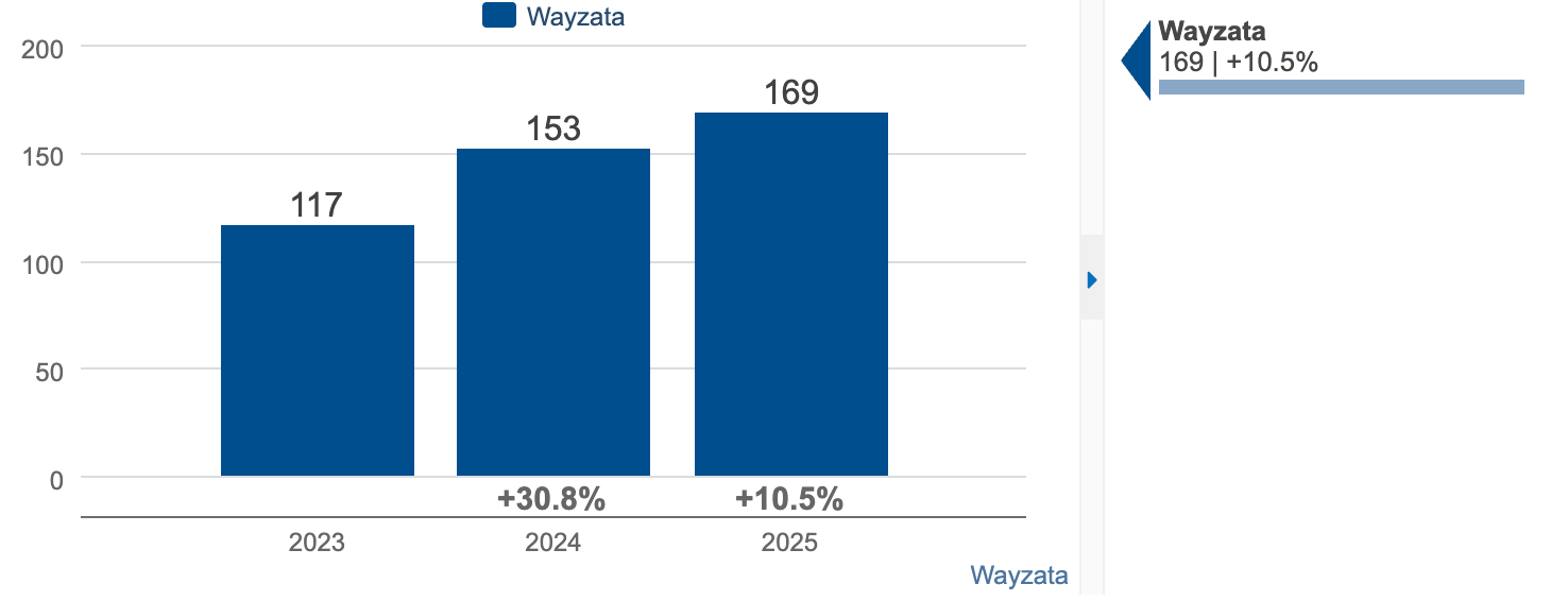 After a modest dip in 2024, median prices rebounded in 2025, reaching the highest level of the past three years. This underscores Wayzata’s resilience and long-term value, even amid broader market shifts.